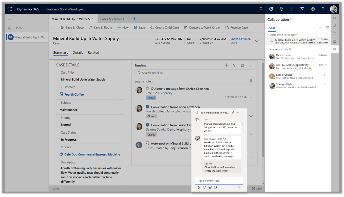 Unfortunately most of these features are not part of the early access release but I did want to share what I found on this. I think one of the best and most impressive features is the ability to engage in a Teams chat while working in Dynamics 365. This feature is listed as an early preview feature but I didn’t find this in my environment so I was unable to test this out. Once this becomes available I will make sure to share what I found in a new article and video. (Update: check out this article where I discuss this feature!)